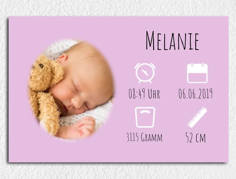 Personalisierte Leinwand mit Wunschbild und Geburtsdaten für Mädchen
