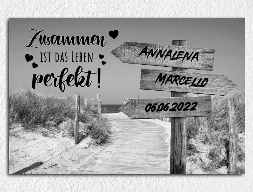 Personalisierte Leinwand Wegweiser Liebe für Paare mit Namen und Datum