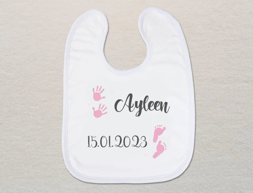 Personalisiertes Baby-Lätzchen | Hand -und Fußabdrücke für Mädchen