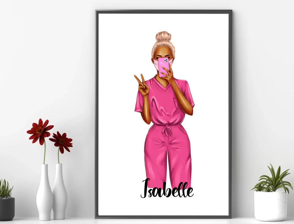 Personalisiertes Bild im Rahmen Clipart Krankenschwester mit Name