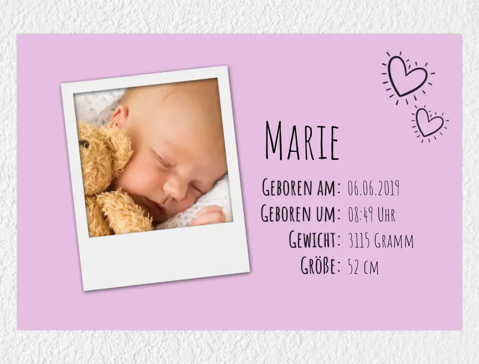 Personalisiertes Poster | Bild + Geburtsdaten Mädchen