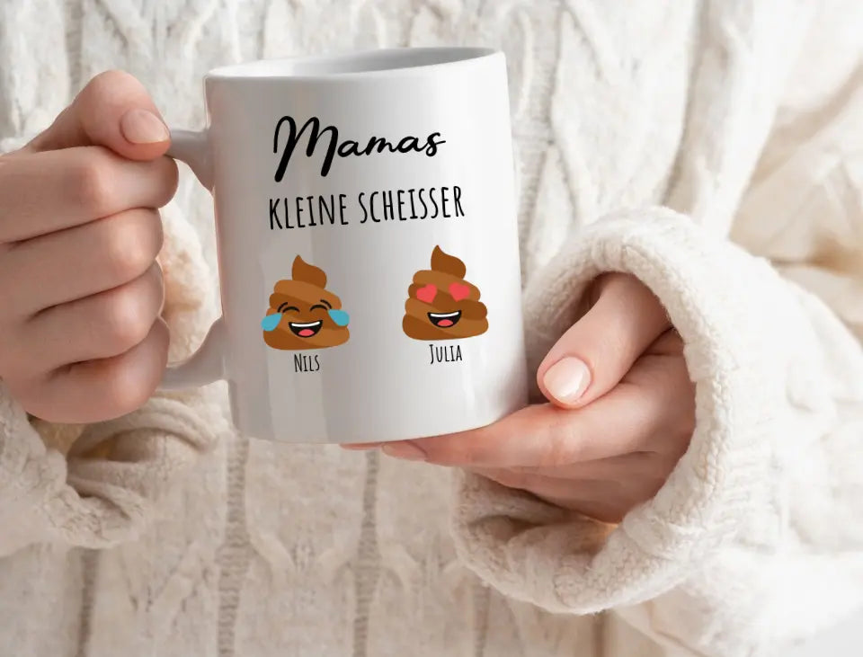 Personalisierte Tasse Basic Mamas zwei kleine Scheisser mit Namen